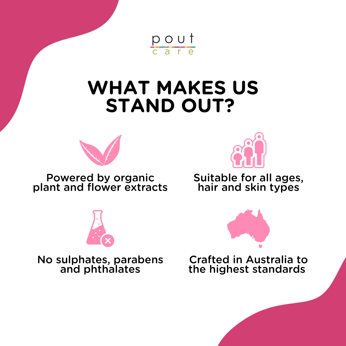 pout Care Natural Shampoos do not contain sulphates, which can dry hair out. In addition, we add organic Sage, Comfrey, and Parsley, along with other enriching ingredients, to nourish and condition, making hair softer and easier to manage. Over time, your child’s hair will look glossier and healthier with regular use.